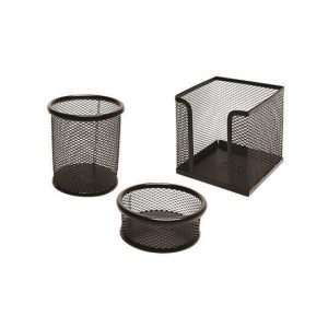 3’Lü Masa Üstü Kalemlik Seti Metal Perfore Siyah
