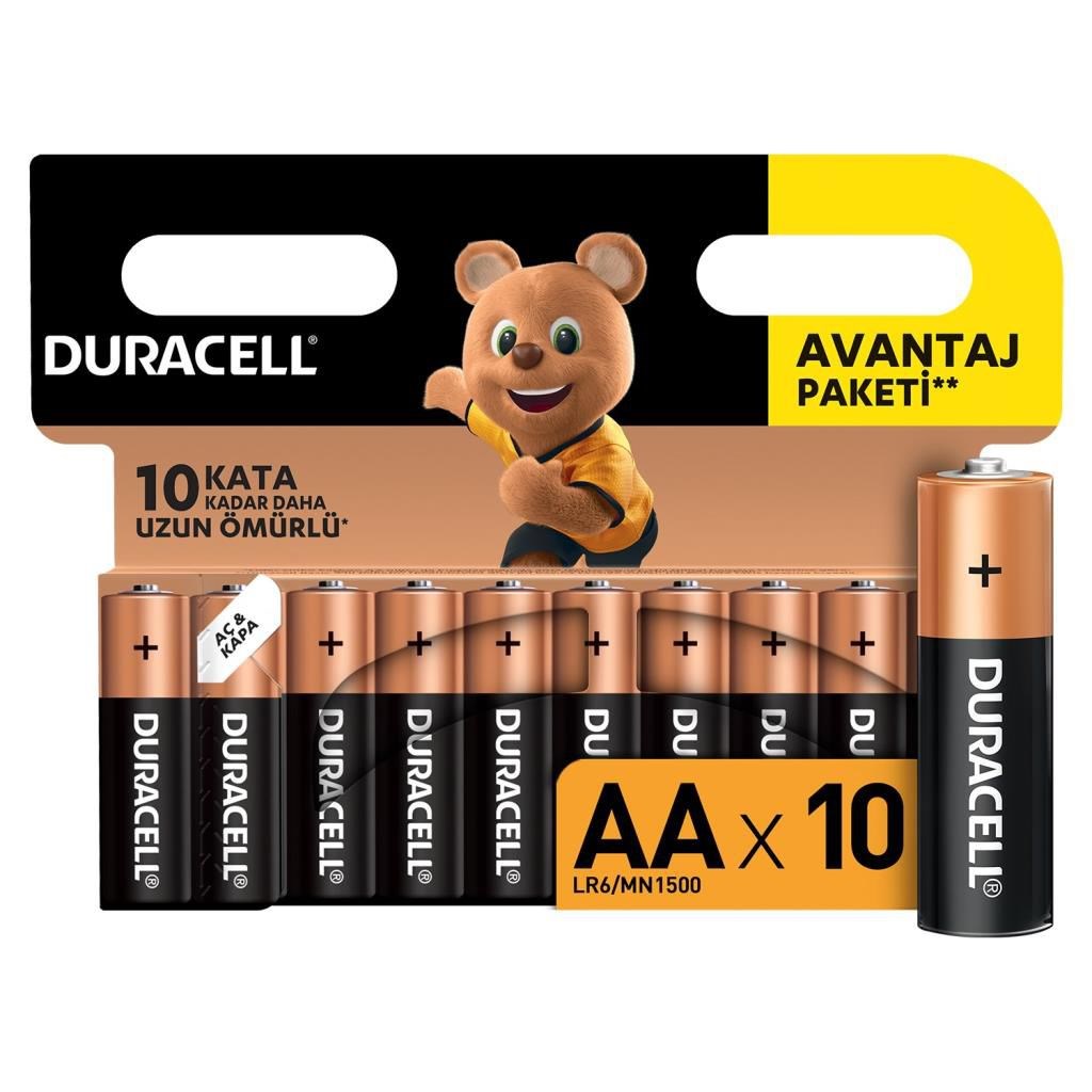 Duracell Alkalin AA Kalem Piller, 10’lu paket
