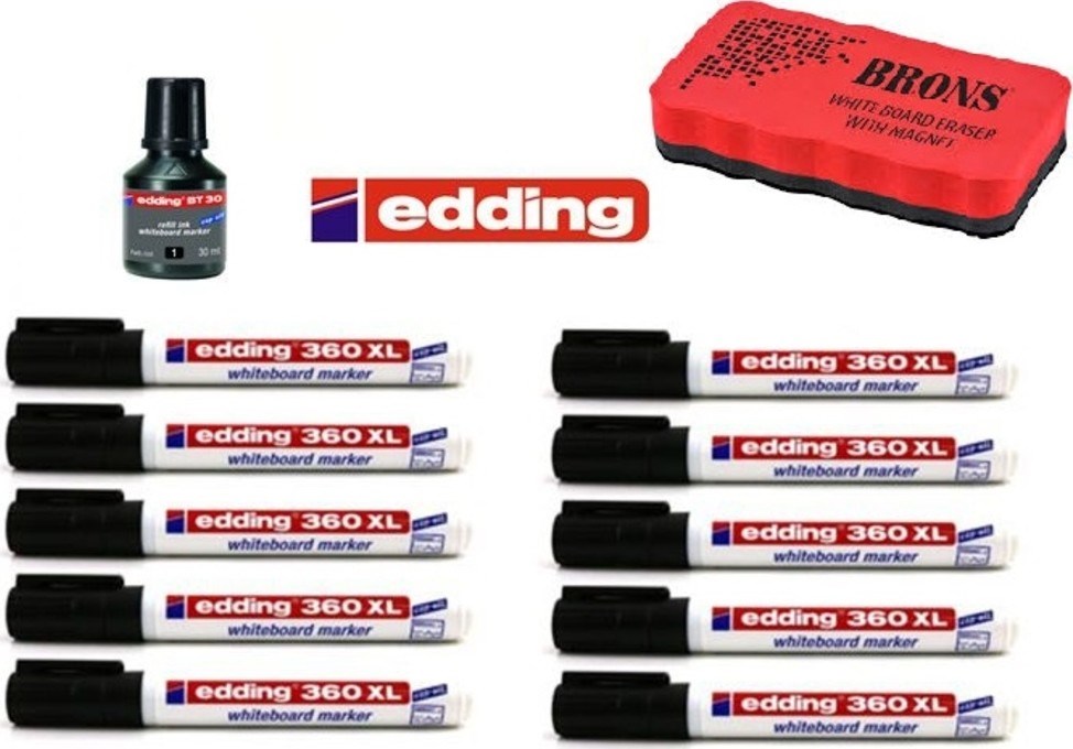 Edding 360 Xl Tahta Kalemi 10’lu Set ( Mürekkep & Tahta Silgisi )