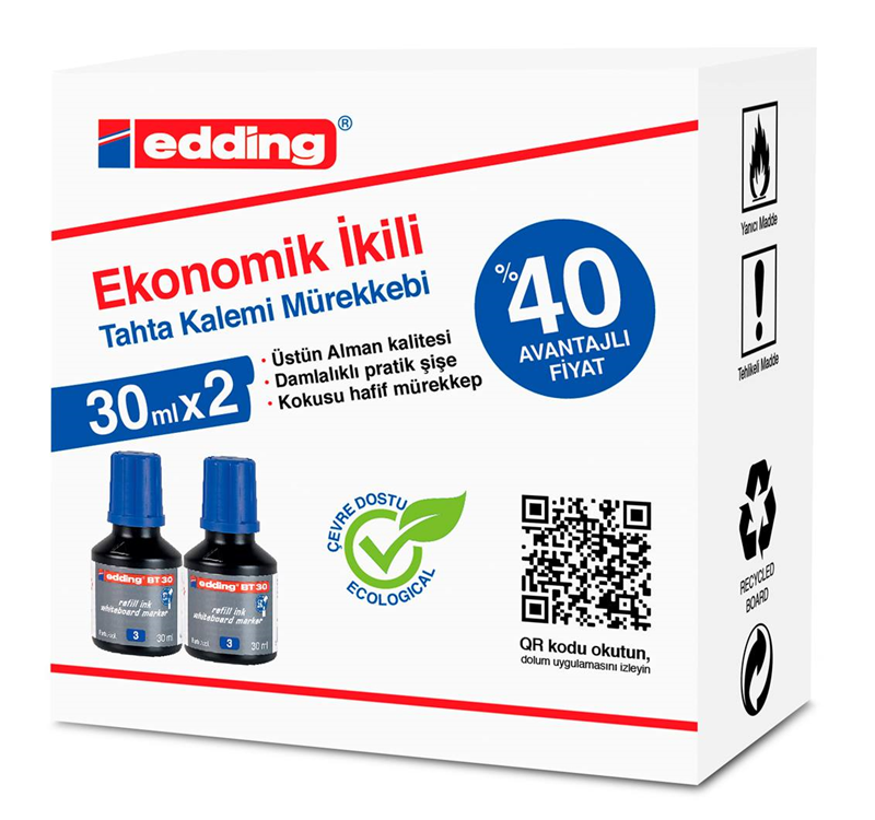 Eddıng Beyaz Tahta Mürekkebi 30 Ml E-bt30 Mavi 2 Li