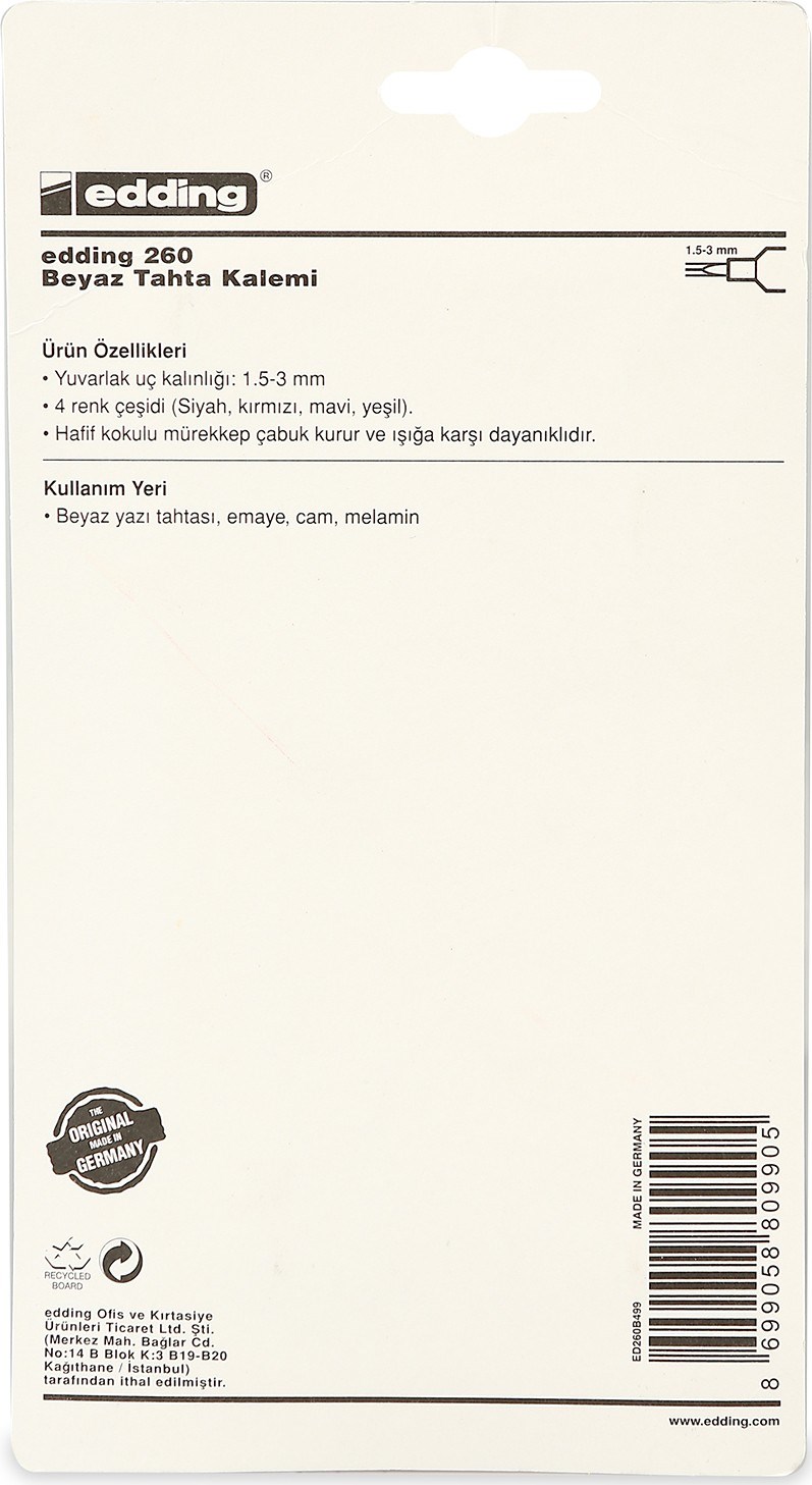 Edding Yazı Tahtası Kalemi 260/4’LÜ Karışık