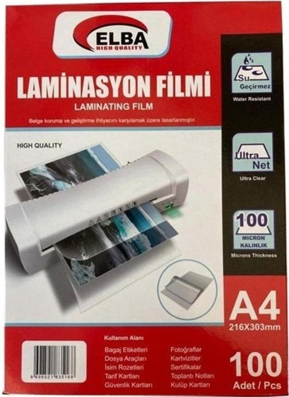 Elba Laminasyon Filmi A4 100 Mic 100 Lü Paket