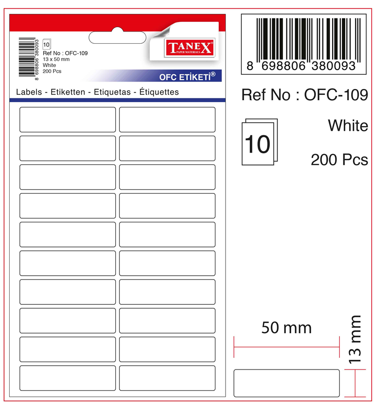 Tanex Ofis Etiketi Ofc-109 Beyaz