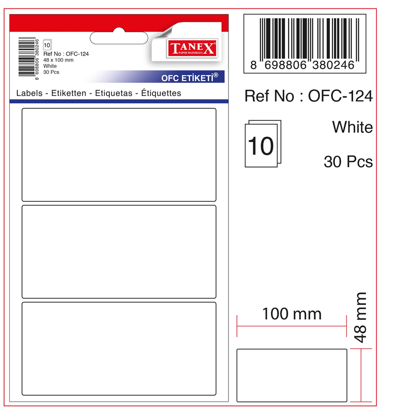 Tanex Ofis Etiketi Ofc-124 Beyaz