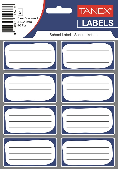 Tanex Okul Etiketi Bordürlü Çift Sıra 5 Li Mavi Brd-7001
